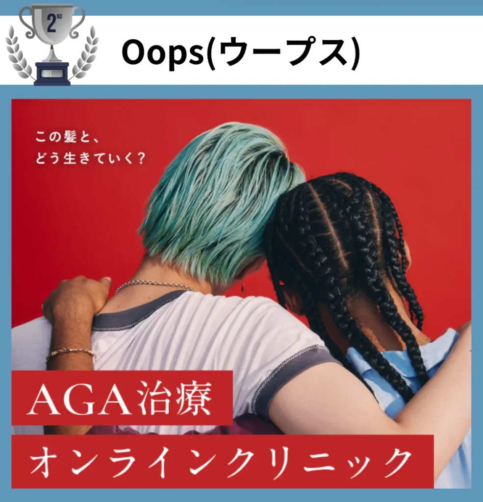 AGA治療の優良クリニック2位と判定したのは、スムーズなオンライン診療が好評なOops(ウープス)。
