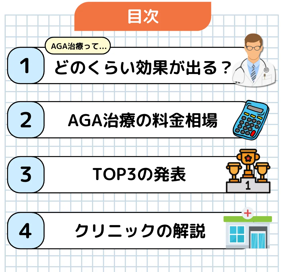 当サイトではAGAクリニック計28院を徹底調査し、特に優良と判定したクリニックTOP3を掲載しました。